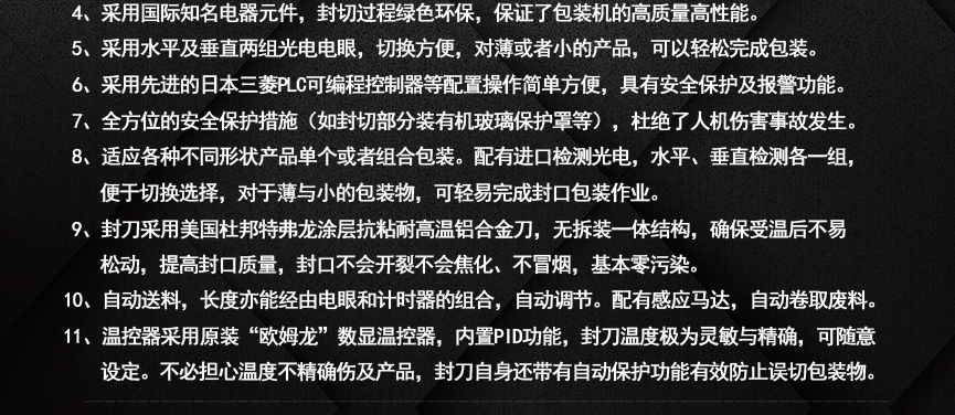 擁有多項專利技術(shù) 數(shù)千平標(biāo)準(zhǔn)廠房 批量標(biāo)準(zhǔn)化生產(chǎn) 可定制開發(fā)和自動化流水線搭建! 超前技術(shù)團(tuán)隊 先進(jìn)加工工藝 高精度加工設(shè)備 近20年專業(yè)研發(fā)經(jīng)驗不斷改進(jìn)、創(chuàng)新、突破!我們定位于專注做中高端全自動熱收縮膜包裝機(jī),請不要拿我們和不同定位的廠家對比!我們是源頭工廠…